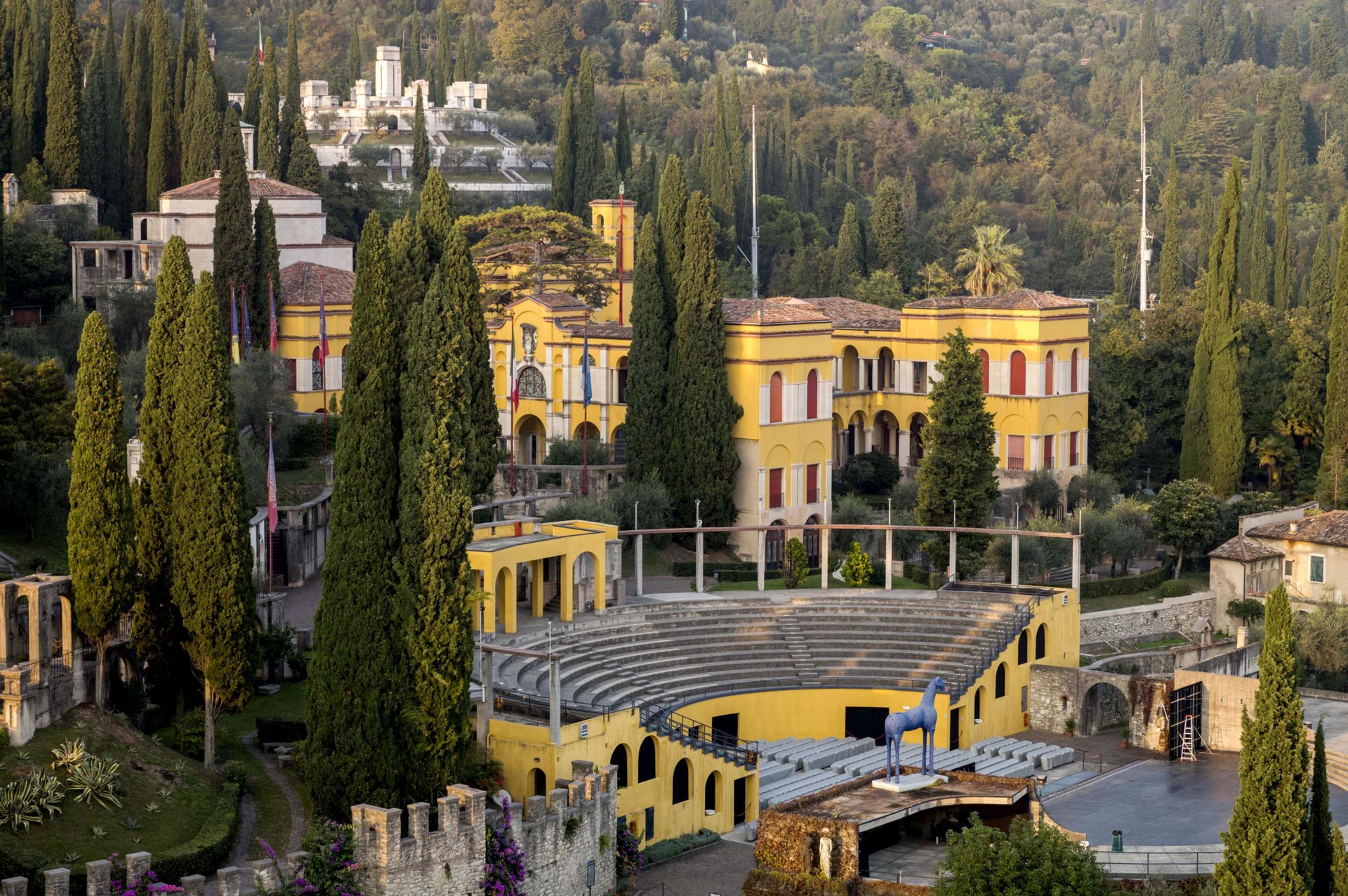 La "cittadella" di Gabriele d’Annunzio. Uno scrigno di tesori eretto tra il 1921 e il 1938, dove giardini, teatri all'aperto e navi di pietra testimoniano il "vivere inimitabile" del Vate.