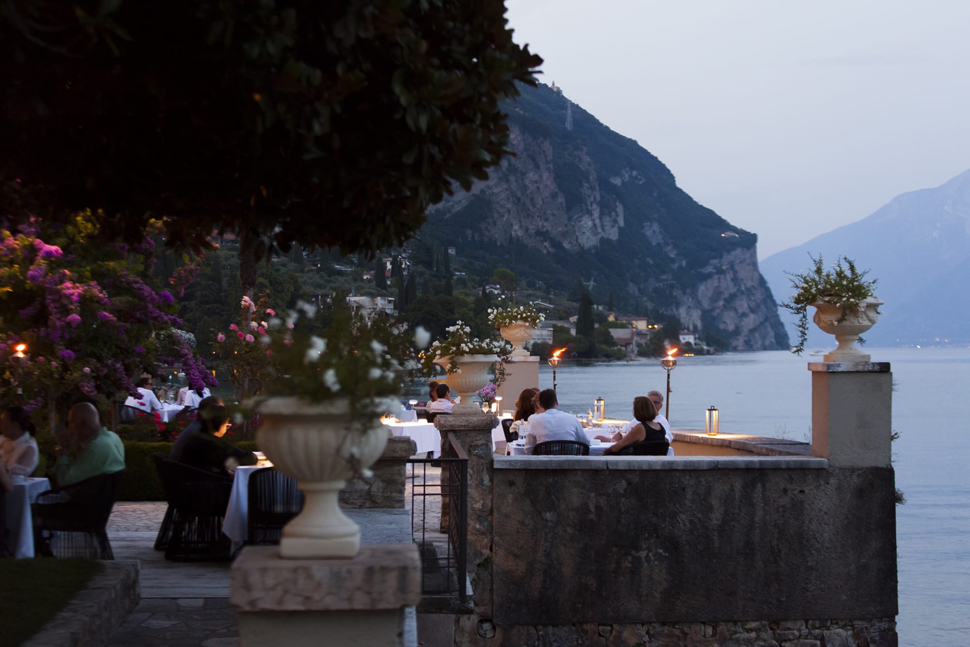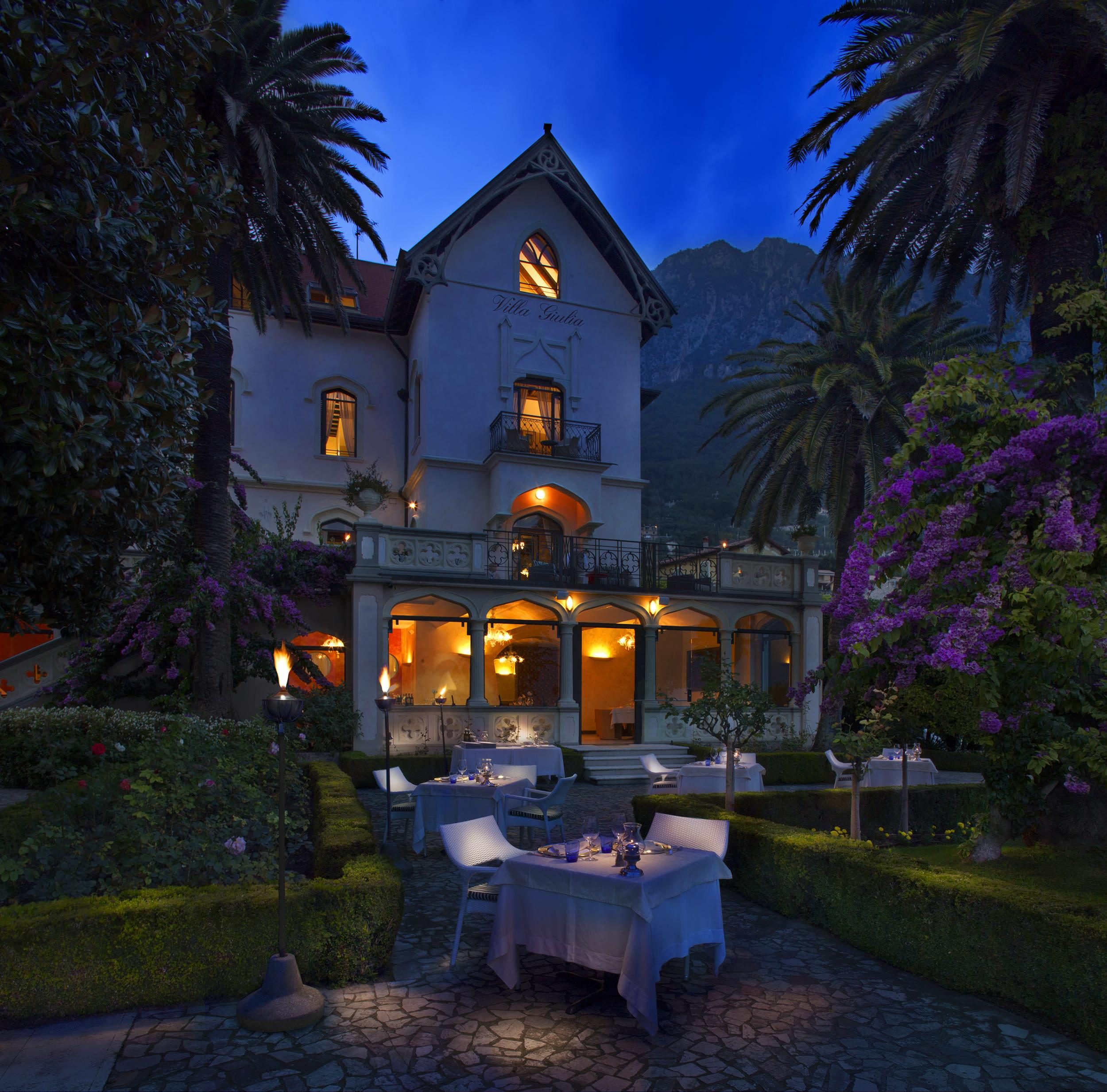 Quando le luci si abbassano e il Monte Baldo si tinge di rosa, la terrazza di Villa Giulia si trasforma nel palcoscenico dei vostri momenti più romantici.